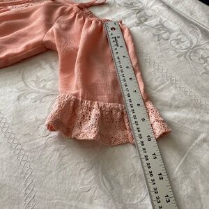 Zunie Girl's Light Salmon Romper 1/2 Sleeve Off Shoulder Lace Trim Lined Size 10