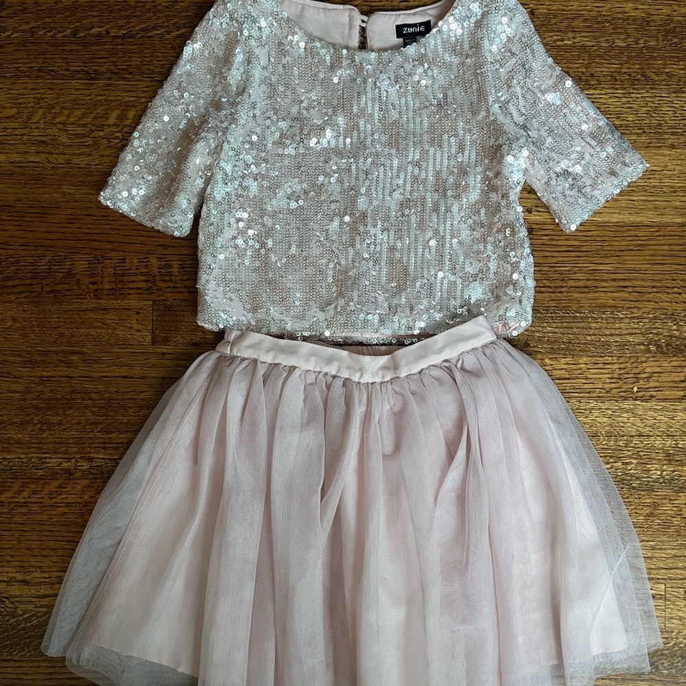 EUC Zunie set - sequin top and lined tulle skirt. Purchased at Nordstrom, worn a couple of times. Great for special occasions. Size 7. Note, the top does not have any stretch so works best for a more slender child.