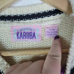 "Zurich" Preppy Korean Graphic Patches Cream and Black Heavy Sweater