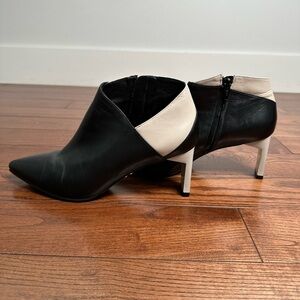 Chic heeled boots by Zvelle. Sleek black with cream accents. Perfect for stylish outings.