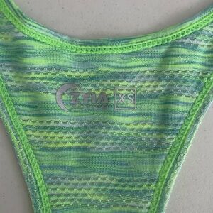 Mesh with striped detailing, ombré neon green and blue.