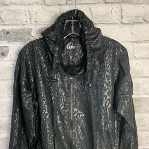 Zyia Active Windbreaker Black Cheetah Print Full Zip Hooded UtilityJacket