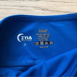 Stylish high-waisted leggings in a vibrant blue color. Perfect for workouts or casual wear.