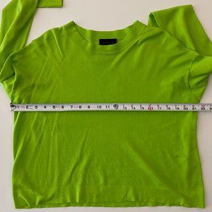 This is a boxy crew-neck jersey sweater in a fresh asparagus colour, in a lightweight Egyptian cotton. I would call this a bright yellow-green, citron vert, acid lime, pistachio, chartreuse, or maybe even bright grass green. It's not quite neon.