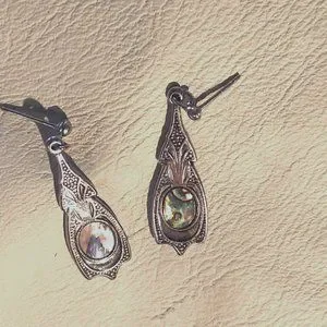 Silver tone (no stamp) post style drops with abalone buttons