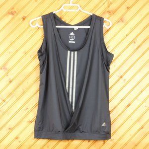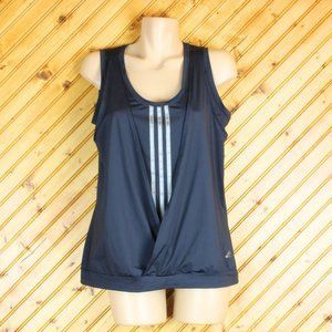 adidas Climacool Tank Top Large Faux Wrap Dark Grey Silver Stripes CA243