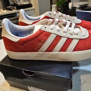 The adidas Gazelle ADV Better Scarlet / Red / Gold Skateboarding JP5861 Mens Size 10 is a stylish and comfortable sneaker designed for skateboarding and casual wear. Featuring a lace-up closure, rubber outsole, and foam insole, this shoe offers a standard fit for men in size 10 (UK 9.5, EU 44). The vibrant red, gold, and white color scheme adds a sporty and modern touch to the classic adidas Gazelle model. Made in Vietnam, this shoe is perfect for walking, school, and skateboardi