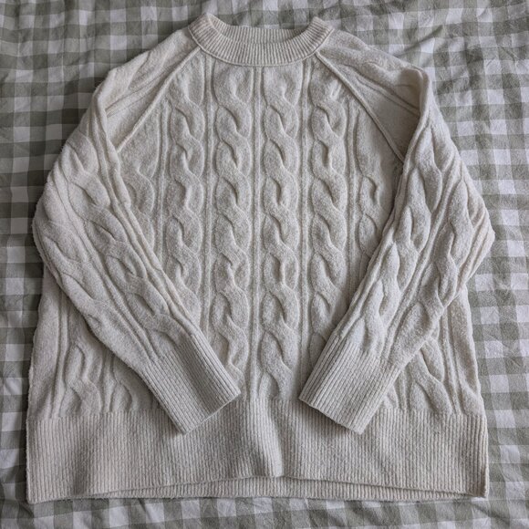 Ultra-soft aerie crew sweater with cable knit pattern.