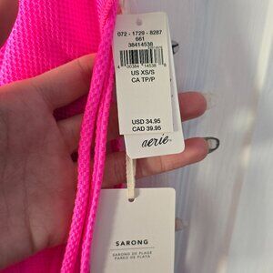 aerie shine pique swim sarong in neon pink with waist tie, never worn. bundle with matching aerie swim top.