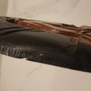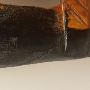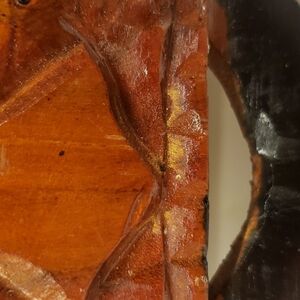 In good condition with some wear. Some natural distressed look with paint/wood carving. A think crack at left center. See photos.
