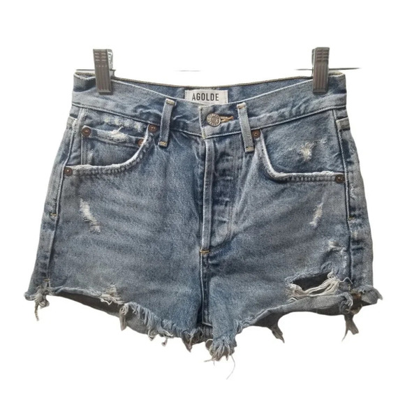 agolde High Rise Button Fly Distressed Jean Shorts 23