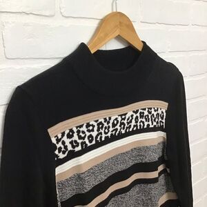 alia petite knit sweater cotton blend black ecru beige animal pattern medium