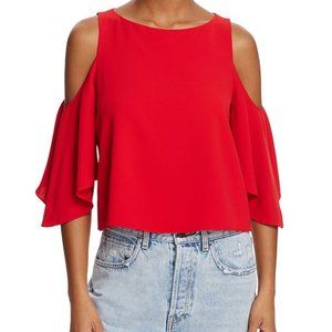 alice + olivia Coralee Blouse, Cold-Shouldered Flutter Sleeve size 2 Deep Ruby
