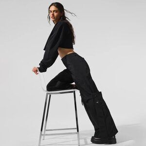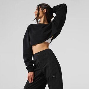 This size Small alo Extreme Cropped Pullover in colour Black was purchased in March 2025 and worn once. I have included a screen capture of the online order to confirm size.