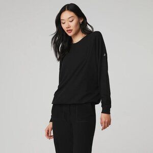 This size X-Small alo Soho Pullover in colour Black was purchased in April 2024. It intentionally has a lived-in look and feel even though it has only been worn fewer than 10 times. I have included a screen capture of the online order to confirm size.