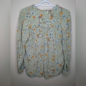 a.n.a. Long Sleeve Sage Green Floral Print V Neck Flowy Top Blouse XS Women
