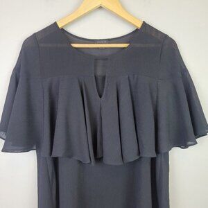 ann Taylor Ruffle Short Sleeve Blouse Black XS