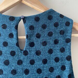 Excellent dress for your holiday parties or to wear for family gatherings and photos. A sleeveless sweater top, with keyhole back and polka dots, blends seamlessly into a navy tulle skirt. A perfect autumn/winter piece. Only flaw to note is a small snag on the tulle - not noticeable while wearing. Size XS. See photos for measurements and details.