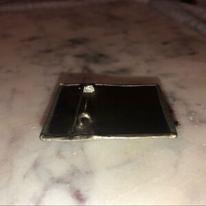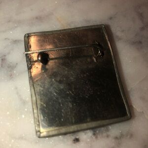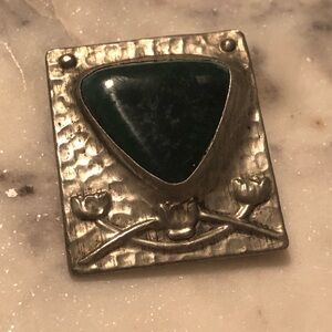 Antique Scottish pebble / agate jewelry, stamped STER (a little worn w age) antique ‘C’ Clasp. Dark green triangle shaped agate, raised thistles image / motif. Approx 1.7” x 1.4”