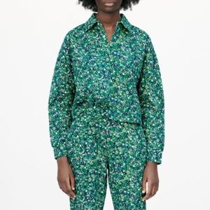 Zara green with ditsy flowers long sleeves polo sweatshirt new with tags. Collar and buttons fastening at the neck, long sleeves with ribbed cuffs, 100% cotton. Pink, yellow, blue etc. ditsy flowers on a green background, oversized relaxed fit. Marked sized M. All measurements are approximate and taken with the garment laying flat: armpit to armpit 20’’ Total length 22’’. This item comes from a smoke free, pets friendly home. Recycled bags/box used when possible. Please, let me know if you'd like any additional pictures and/or measurements or other info. Thanks for watching!