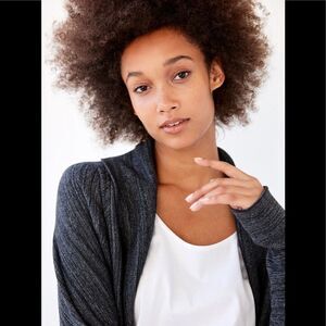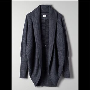 Aritzia Wilfred Diderot Sweater in Dark grey .This is a cocoon sweater with ribbed sleeves and pyramid stud details. It's made with a brushed fabric that's super soft. 70% cotton 30% modal Retailed for $98 plus tax