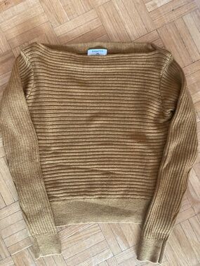 Golden yellow knit cropped sweater by Babaton from Aritzia. In good used condition, some pilling in armpits and minor area of pilling on front under the bust area (tried to show in last photo, really hard to see and not really noticeable in person). Photos taken in natural light and last photo taken inside.