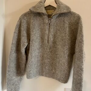 aritzia wilfred gwyneth alpaca wool zip up sweater - light grey, size XS