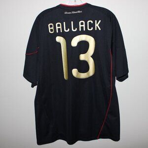 100% official licensed GERMANY 2010-11 away shirt, featuring the name and number of all-time great #13 MICHAEL BALLACK. Manufactured by Adidas in size Men's XL as it says on the label. I personally measured xx" from armpit to armpit across the chest at the widest part and xx" from top of shoulder to back of hem. Original merchandise. No time for Far East fakes or modern reproduction bollocks. This is the real deal.