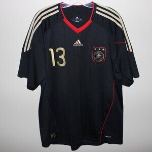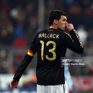 As worn by the German powerhouse midfielder in the qualifying rounds for FIFA World Cup 2010 when he scored four goals, but missed out on the tournament proper due to injury. It turned out to be the last time he would wear the three stripes of Deutschland. The DFB offered him two friendlies to reach 100 matches for Germany but he declined, accusing Löw of disrespecting him ever since his injury dating back to March 2010 and calling the invitation to compete in another two games for Germany a "farce".