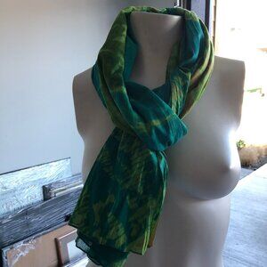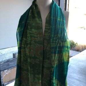 ayfee Hand Tie-Dye Blanket Scarf in Turquoise Blue, Green, Rust, purchased in Mykonos, no fabric tag