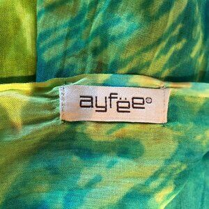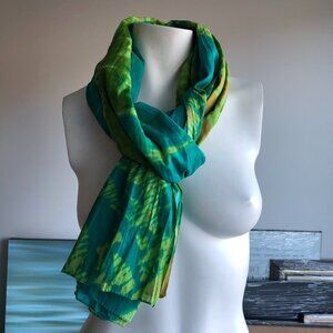 ayfee Hand Tie-Dye Blanket Scarf in Turquoise Blue, Green, Rust, purchased in Mykonos, no fabric tag