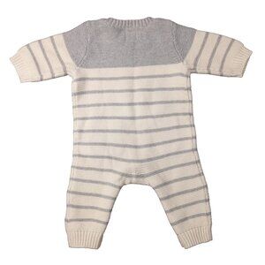 baby GAP Cream And Gray Striped Cozy Knit Winter Romper Onesie US 0-3M
