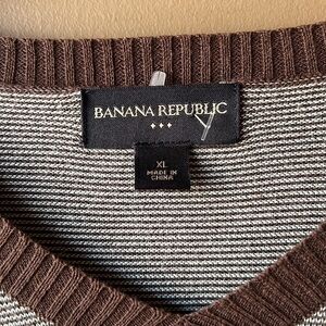 banana REPUBLIC Brown Striped Cotton V Neck Sweater Size XL