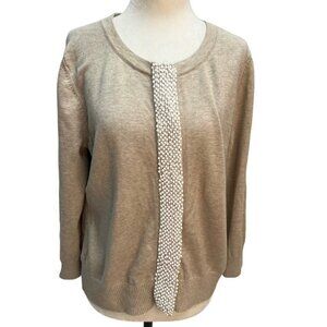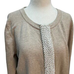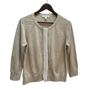 banana Republic Beige Cardigan Sweater 3/4 sleeve Beaded Front Size XL