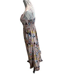 band of The Free Maxi Dress Bustier Smocked Back Mauve Blush pink Size M fairy