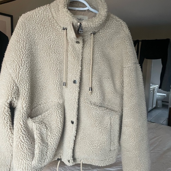 Soft and warm teddy/sherpa jacket. Features a cozy design with drawstring details. Perfect for layering in cooler weather. Warm only a couple of times, like new.