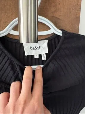 ba&sh Black Ribbed Short-Sleeve Keyhole Knit Top