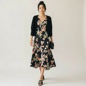 *styled with a floral print dress and a knit midi skirt both available separately in the closet.