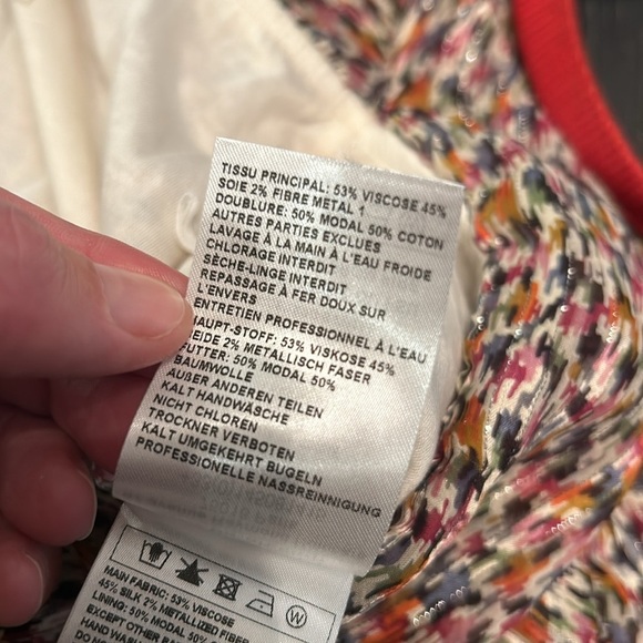 53% viscose/45% silk/2% metallic fibers; lining: 50% cotton/50% modal