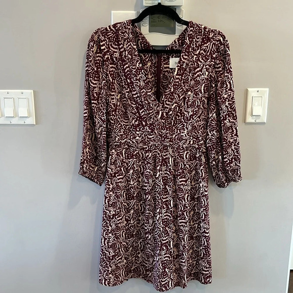 The LIA dress by ba&sh combines simple, feminine style for daily wow effect. A short dress with a V-neckline and sleeves cropped above the wrist with gathering on the shoulders and elastic cuffs which slightly reveal the wrists. The waist is marked with a pleated belt inspired by a tuxedo and the chest has a gathered and piped bib. In lightweight, floaty fabric with a two-tone botanic print with bohemian inspiration. Check out the pretty small V in the back and gathering under the belt for movement. A delicate printed dress with laid-back style.