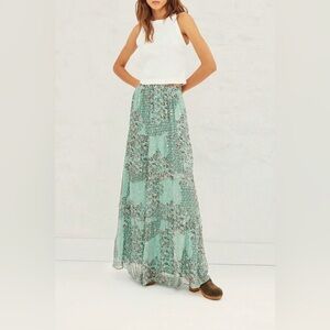 Beautiful vintage-inspired floral print skirt featured in a tiered silhouette.