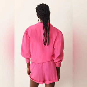 Stunning fushia blouse, the material feels luxe and lightweight. One small mark on back of arm in photo #7 not noticeable at all!