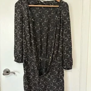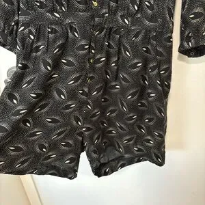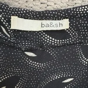This ba&sh play suit features a sleek black color with a contemporary pattern, making it a standout piece for casual occasions. The snap-down design offers a relaxed yet stylish look, perfect for everyday wear. Its unique pattern adds a touch of modern flair to your wardrobe. Super comfortable ill viscose blend. HAS POCKETS