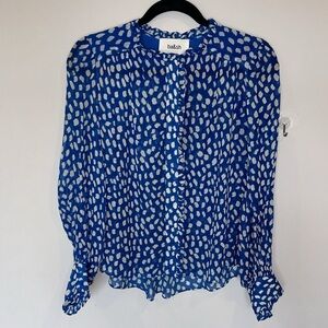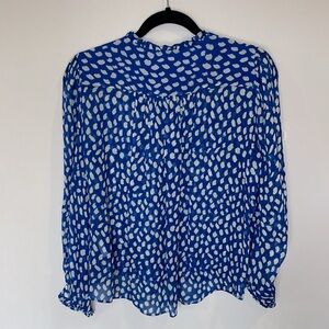 ba&sh Ruffle Bingo Giraffe Print Sheet Blouse Blue