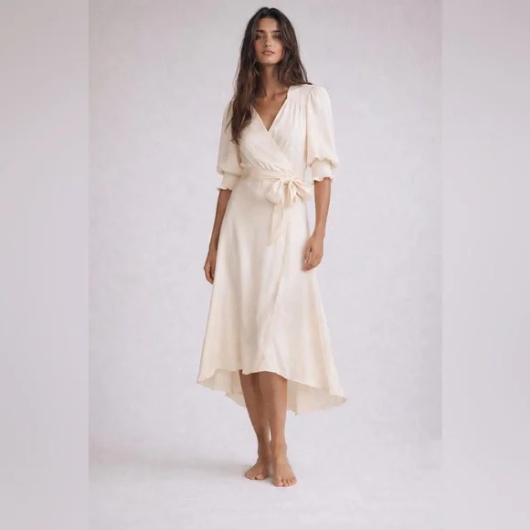 ba&sh Soft Cream High-Low Wrap Dress