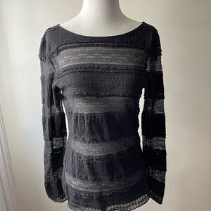 BCBGmaxazria black semi-sheer lace long sleeve shirt size medium