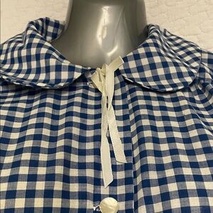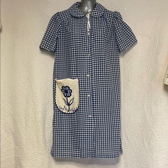 beautiful Blue Gingham Dress with Floral Pocket