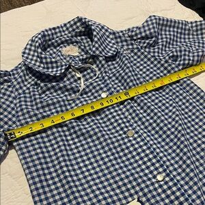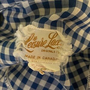Charming blue gingham dress featuring a floral pocket. Perfect for casual outings.a day. i'm sorry i cant see what the material is other then 65% polyester