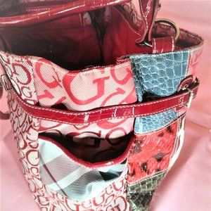 big red tote bag, could be used as a purse, lots of color, lots of detail, make a splash!