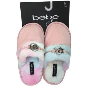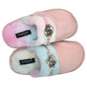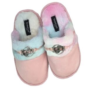 πΈ bebe Faux Fur Rainbow Tie Dye Slip on Slippers Shoes Girls M NIP